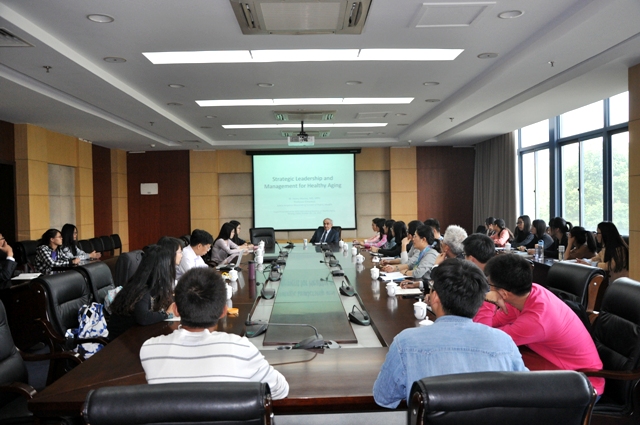 2015年10月20日上午,Bwin必赢线路检测中心邀请到约翰·霍普金斯大学终身教授亨利•莫斯利博士前来做题为《健康老龄化的战略领导与管理》的报告。Bwin必赢线路检测中心硕士生导师,相关研究方向教师,全体研究生和部分本科生前来听取报告,活动由院长黄宝凤教授主持。