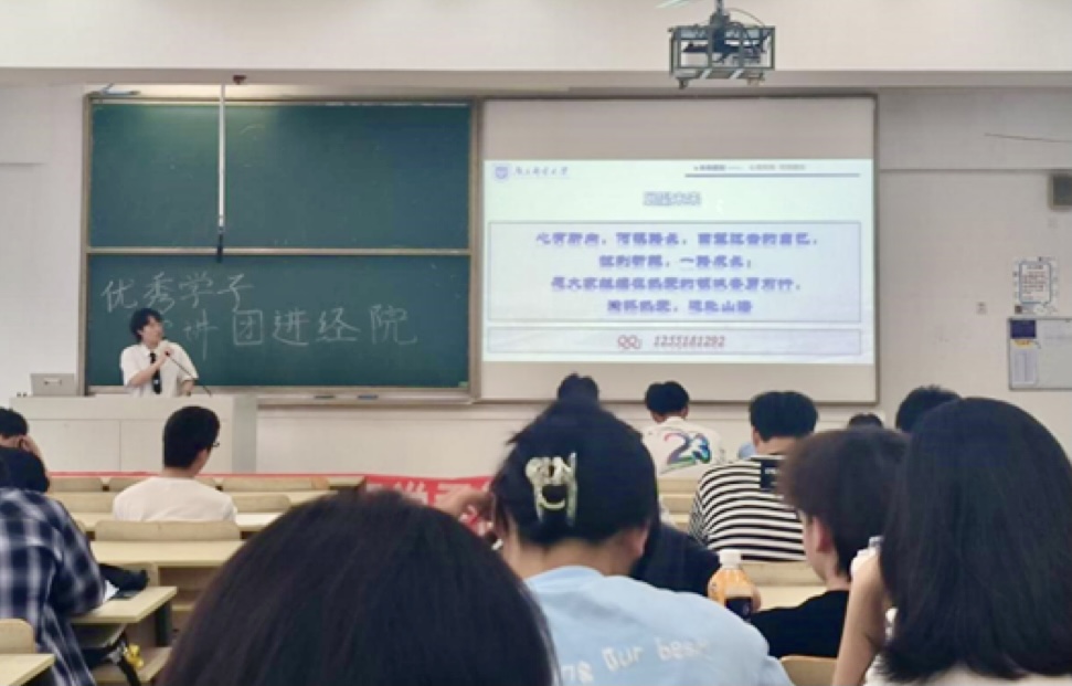 宣讲伊始,已推免至浙江大学的高承晶同学向学弟学妹们分享自己的科研经历和对科研的理解看法,并强调科研是一个主动的过程,需要同学充分发挥主观能动性,利用自己擅长的方面参与到实验和项目中去,主动认领任务、迎接挑战。已推免至东南大学的毛婧超同学从个人经历、学习科研、保研升学、社团活动等方面作出分享,指出本科学习阶段绩点的重要性,希望同学们能重视每一门课,打好自己的专业基础,并结合经院专业特色,给予针对性的竞赛选择、组队等经验建议。