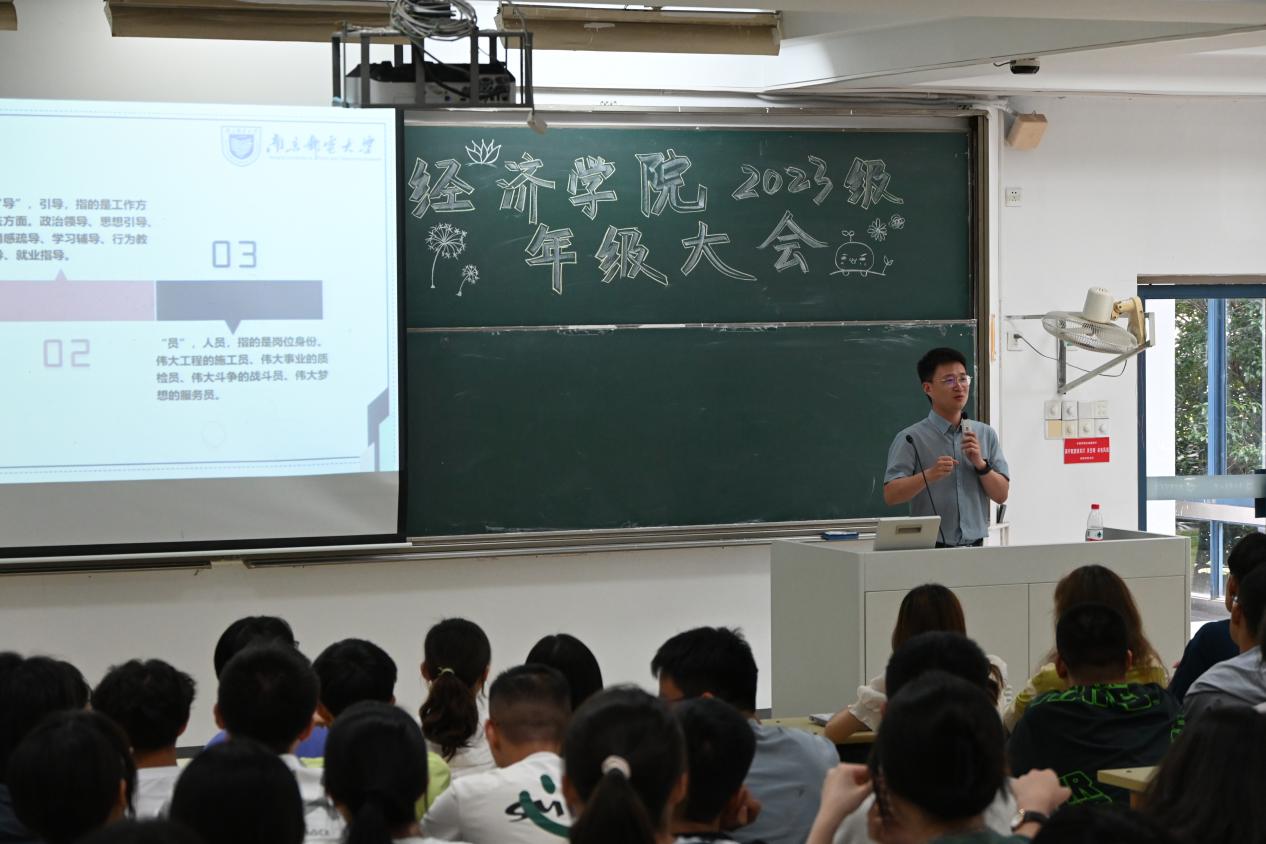 会议伊始,尤老师首先对辅导员这个职位进行了详细的解读并向同学们分享了自己的个人经历,希望大家能在接下来的四年学会“找自己”,进一步坚定理想信念,树立目标并为之努力。随后,尤老师为同学们的大学四年规划提出了合理的建议,着重强调了理论知识学习、综合素养提升、校纪校规、生活关系处理、防电信诈骗等几个方面的内容,叮嘱同学们要提高是非辨别能力,系好人生第一粒扣子。会议最后,尤老师对新生提出期许,希望同学们主动提升自我,勉励同学们敢于尝试,拼搏向上。