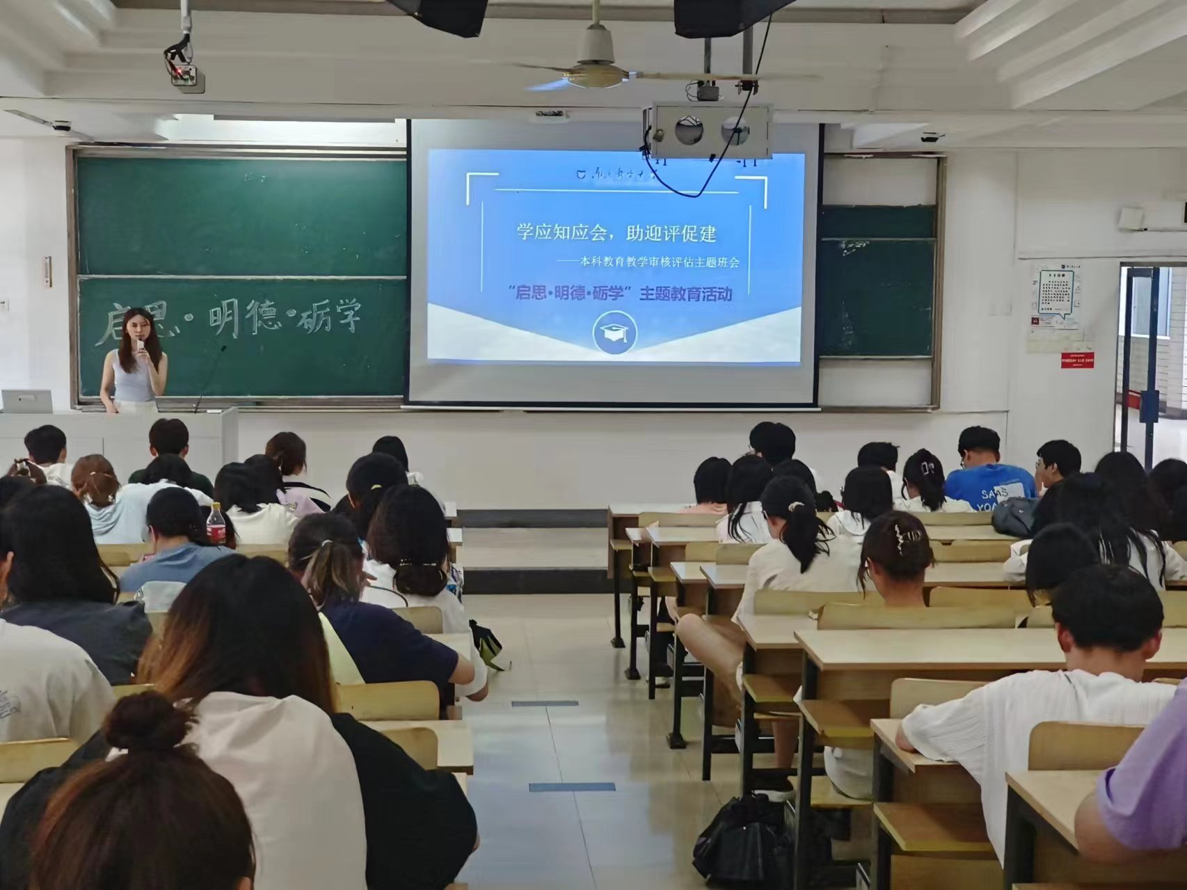 为深入落实立德树人根本任务,全面迎接教育部新一轮本科教育教学审核评估,总结本学期学习工作情况,引领同学们更好地进行期末备考及大三规划,2024年6月12日下午,Bwin必赢线路检测中心2022级召开“启思·明德·砺学”主题教育大会暨期末年级大会,学院党委副书记兼副院长吴迪应邀出席,全体2022级学生参加,大会由2022级辅导员储宜旭老师主持。